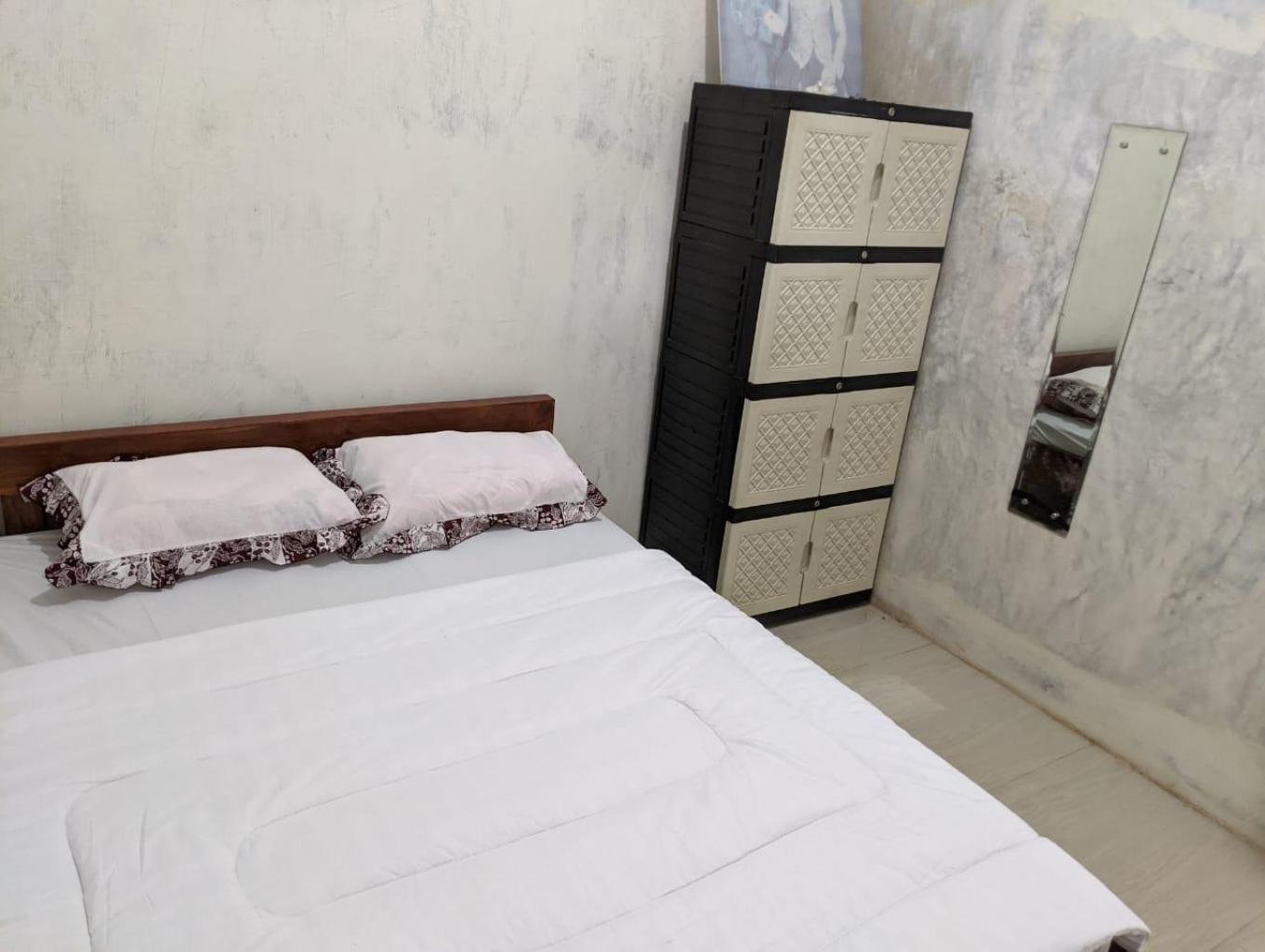 kamar homestay dengan ventilasi udara yang cukup, lengkap dengan kunci kamar, ruang tamu, dapur dan kamar mandi