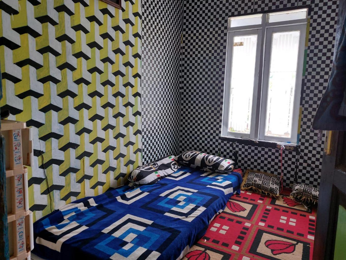 Kamar tidur yang tersedia tanpa ranjang, diatas papan kayu