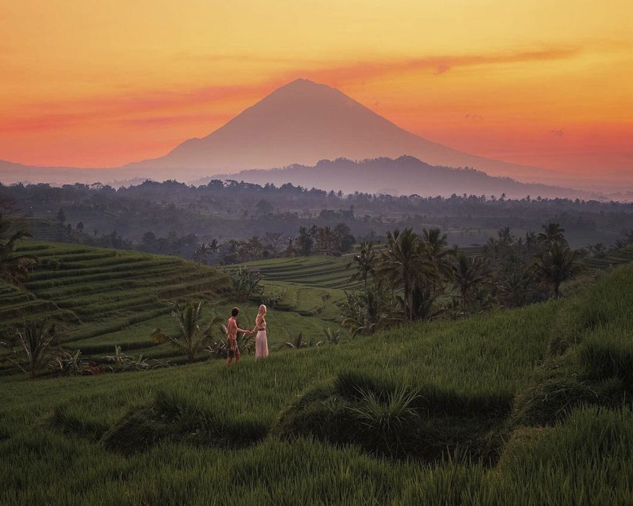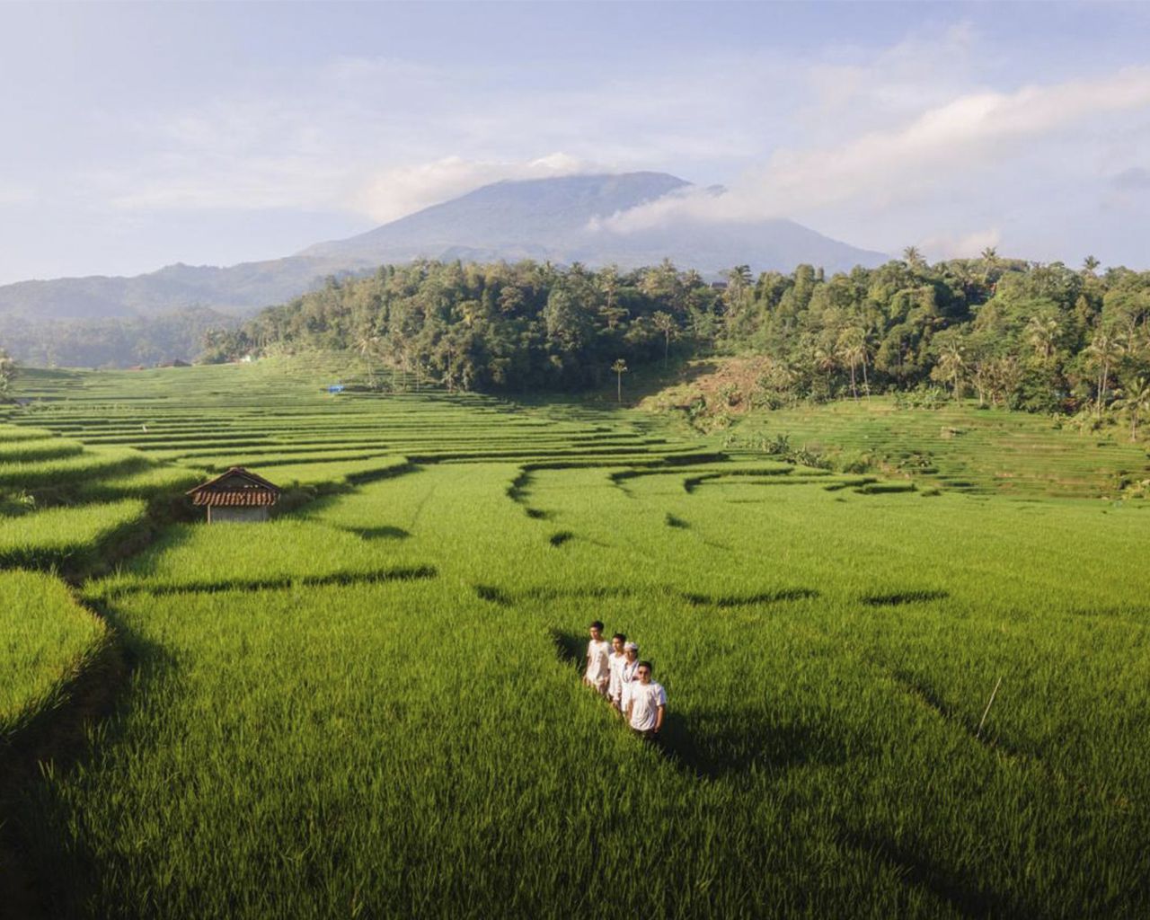 Pemandangan Sawah Dan Gunung