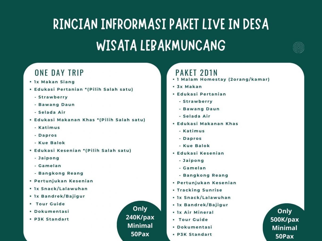 2 Hari 1 Malam: Rp.500.000